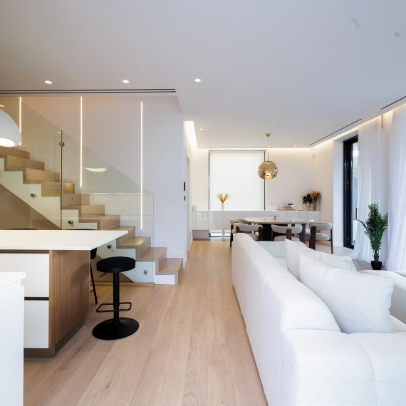 Κεντρικός άξονας της αρχιτεκτονικής των κατασκευών του αποτελεί ο μινιμαλισμός μέσω γραμμικών λιτών αρχιτεκτονικών σχημάτων τα οποία λειτουργούν και τοποθετούνται με στόχο την ενοποίηση του εξωτερικού χώρου με τον εσωτερικό.  H ενοποίηση του έσω και έξω περιβάλλοντος  επιτυγχάνεται με κύριο σύνδεσμο  το φως και ταυτόχρονα και ισάξια με  την εξυπηρέτηση της λειτουργικότητας όπως αυτή περιγράφεται από τις ανάγκες των ενοίκων.
